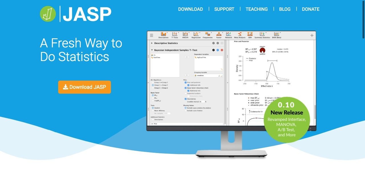 JASP is an open-source statistical software programme developed to help researchers reach maximally informative conclusions with minimal fuss.