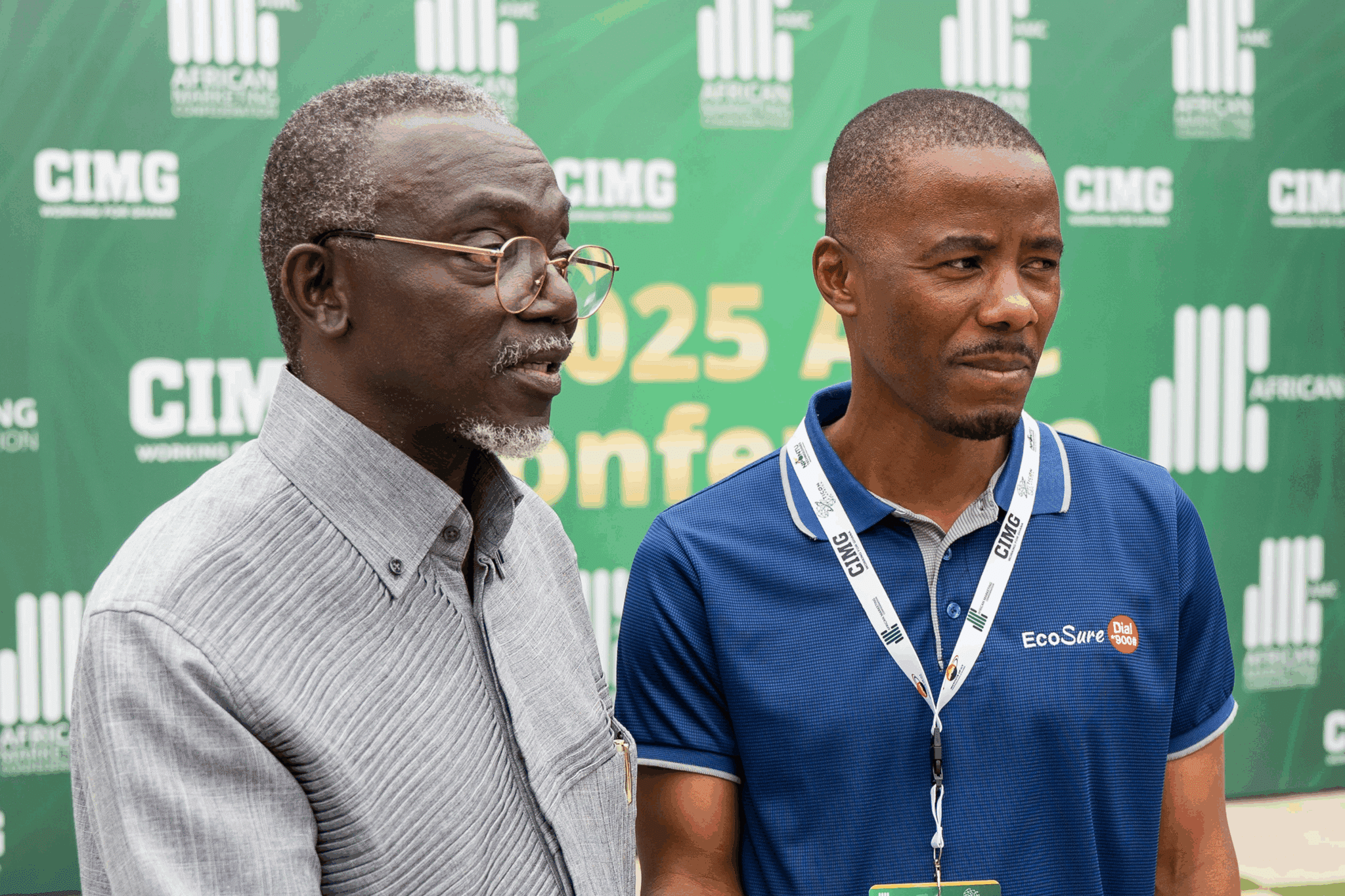 Professor Douglas Boateng, Africa’s first Professor Extraordinaire in Supply and Value Chain Management, meets with a delegate at the African Marketing Confederation’s 2025 Conference in Accra. In his keynote address, he urged industry and policy leaders to reconsider the meaning of “Made in Africa” as the continent navigates the opportunities presented by AfCFTA. His work as a strategist, researcher, and author continues to connect academia, industry, and policy. (Photo supplied by the African Marketing Confederation)